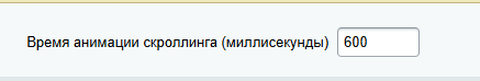 Поле ввода "Время анимации скроллинга (миллисекунды)".