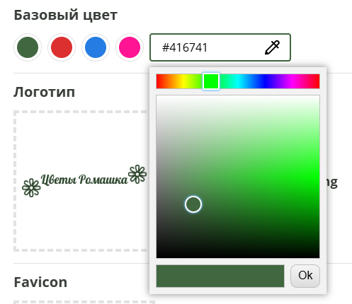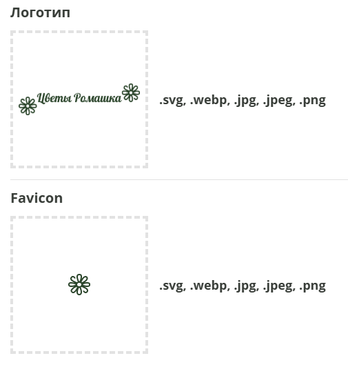 После сохранения логотип будет отображаться в шапке и подвале. Фавикон тоже применяется сразу после сохранения настроек.