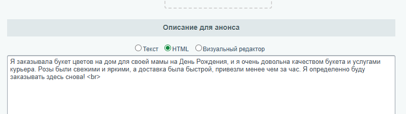 Заголовок берётся из поля "Название", а текст берётся из поля "Описание для анонса".Всё редактируется, можно писать любой текст в "Ответе".
